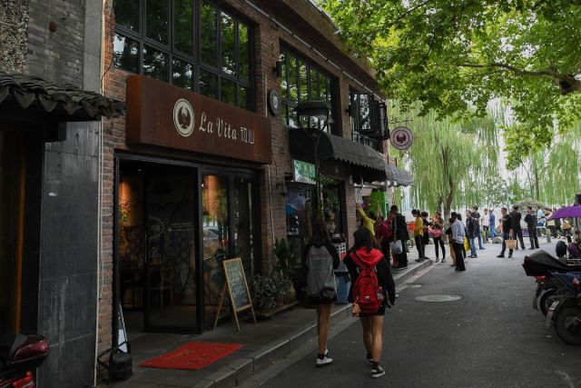 游客從“初心”咖啡館的門前經(jīng)過(guò)。靠近杭州南山路的“初心”咖啡館以前是“東籬會(huì)所”,如今成了別有風(fēng)味的大眾咖啡館。新華社記者 黃宗治 攝