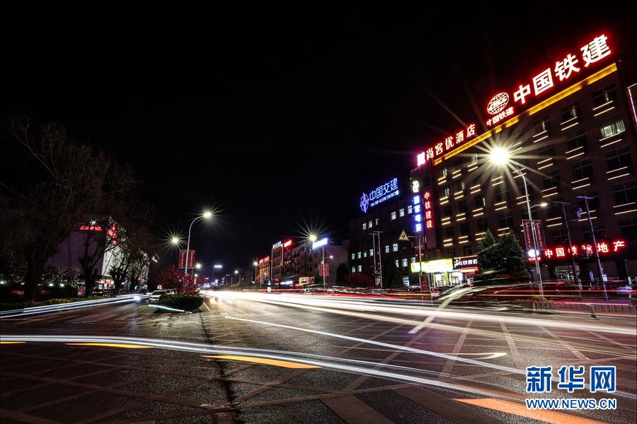 容城縣奧威路夜景,這里被外界稱為“央企大街”。中國雄安官網(wǎng)記者 王永康 攝