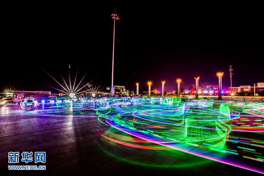 夜幕中的三賢廣場,孩子們的玩具車留下五光十色的軌跡。中國雄安官網(wǎng)記者 王永康 攝