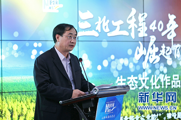 三北工程“生態(tài)文化作品征集展播”啟動(dòng)儀式現(xiàn)場(chǎng)。 新華網(wǎng) 陳延特 攝