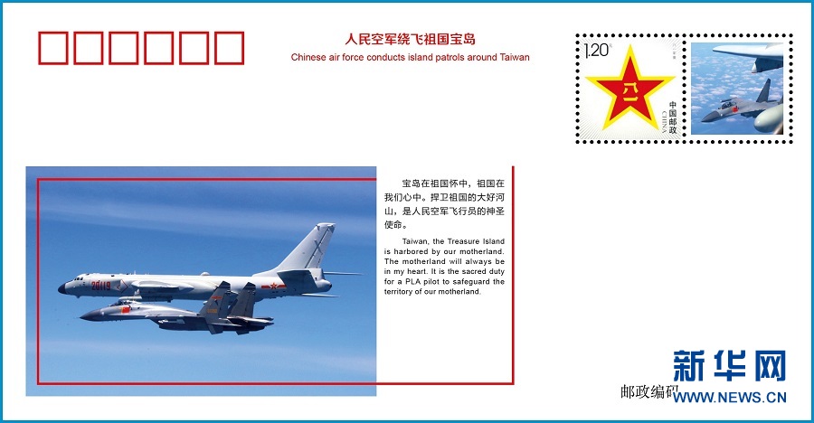 這是《人民空軍繞飛祖國寶島》紀念封。 4月28日,一套7枚《人民空軍繞飛祖國寶島》紀念封和一套《戰(zhàn)神巡航寶島》多方言、多語種宣傳片在福建發(fā)布,彰顯了人民空軍捍衛(wèi)國家主權(quán)和領(lǐng)土完整的意志能力。新華社發(fā)