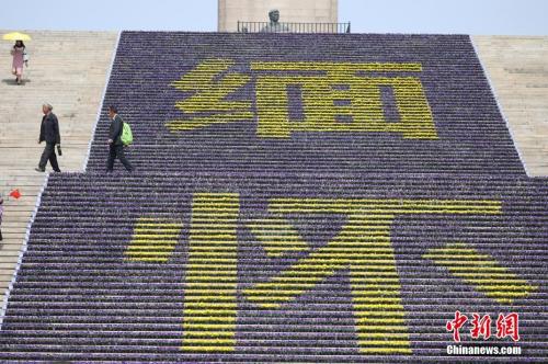資料圖:3月26日,南京雨花臺烈士陵園內(nèi)的烈士紀(jì)念碑前布置了由數(shù)萬盆鮮花組成的“緬懷”花壇,以此表達(dá)對革命英烈的紀(jì)念之情。 中新社記者 泱波 攝