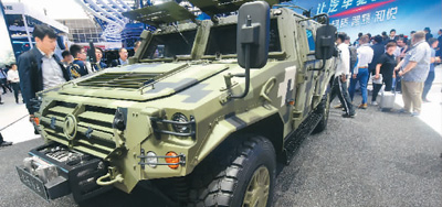 4月25日,擁有自主知識(shí)產(chǎn)權(quán)的軍用版東風(fēng)猛士亮相北京車展。龍巍攝(人民視覺)