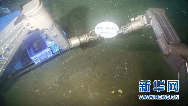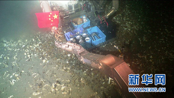這是“海馬”號遙控潛水器拍攝的海底聯(lián)合工作過程。新華社發(fā)