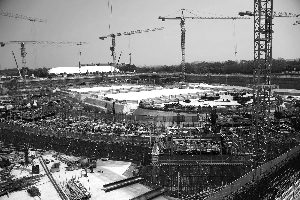 記者從施工現(xiàn)場(chǎng)了解到,國(guó)家速滑館將于6月“躍出”地面,年底完成鋼環(huán)梁和索網(wǎng)結(jié)構(gòu)的施工、外維護(hù)結(jié)構(gòu)的施工。明年6月完成玻璃幕墻的施工,明年年底完工。
