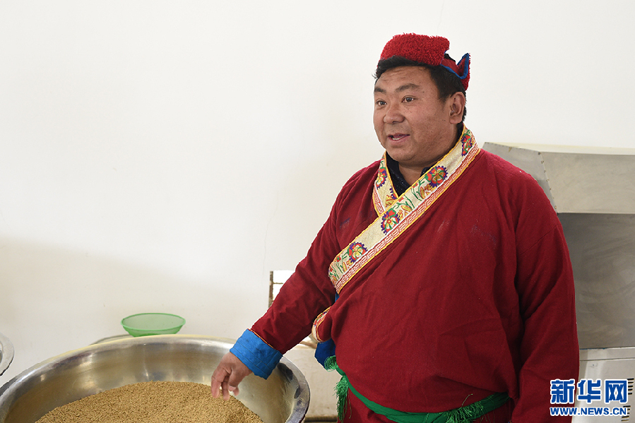勒布溝特色產(chǎn)品農(nóng)牧民專業(yè)合作社負責人群增次仁向記者介紹情況(5月13日 攝)。新華網(wǎng)記者 陳琳 攝