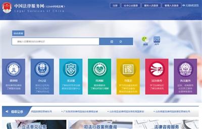 中國法律服務(wù)網(wǎng)(www.12348.gov.cn)由部、省級兩級平臺組成,包括門戶網(wǎng)站、微信公眾號和移動客戶端。記者從司法部發(fā)布會上了解到,中國法律服務(wù)網(wǎng)整合了38萬多家法律服務(wù)機(jī)構(gòu)和139萬多名法律服務(wù)人員的數(shù)據(jù),提供咨詢、查詢和征集等功能。