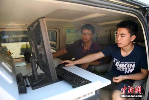 資料圖:2017年高考,技術(shù)人員在福州一考場(chǎng)開展無線電信號(hào)監(jiān)測(cè)。張斌 攝