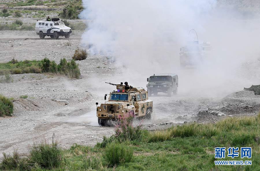 2017年6月27日,代號為“天山-3號(2017)”的上海合作組織成員國中吉邊防部門聯(lián)合反恐演習在中吉兩國邊境同時打響。新華社記者 王菲 攝