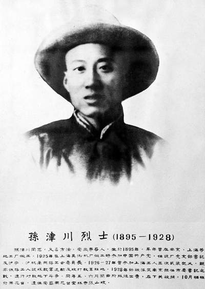 1925年8月經(jīng)彭干臣等介紹,孫津川加入中國共產(chǎn)黨,并當(dāng)選為滬寧鐵路工人協(xié)進(jìn)會(huì)委員。不久,中共吳淞機(jī)廠特別支部成立,孫津川被選為特支書記。