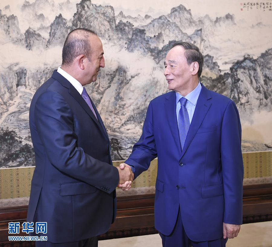 6月15日,國家副主席王岐山在北京中南海會見土耳其外長恰武什奧盧。 新華社記者張領(lǐng)攝