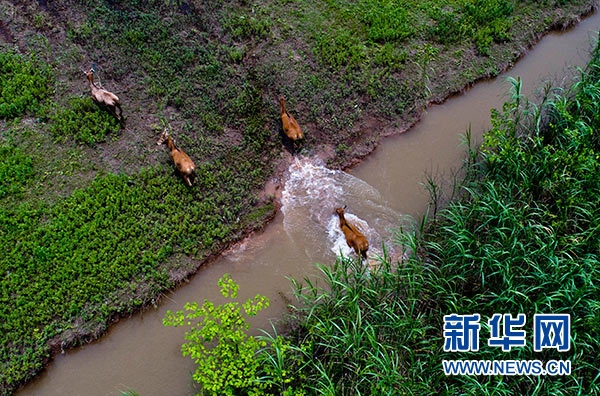 麋鹿是濕地生物中的旗艦物種,其生存情況與濕地生態(tài)保護(hù)的情況息息相關(guān)。近年來,湖南省通過綜合執(zhí)法、地方立法、專項(xiàng)整治等方式,不斷改善洞庭湖濕地生態(tài)環(huán)境。洞庭湖區(qū)正在成為麋鹿、候鳥、江豚等野生動物的樂園。