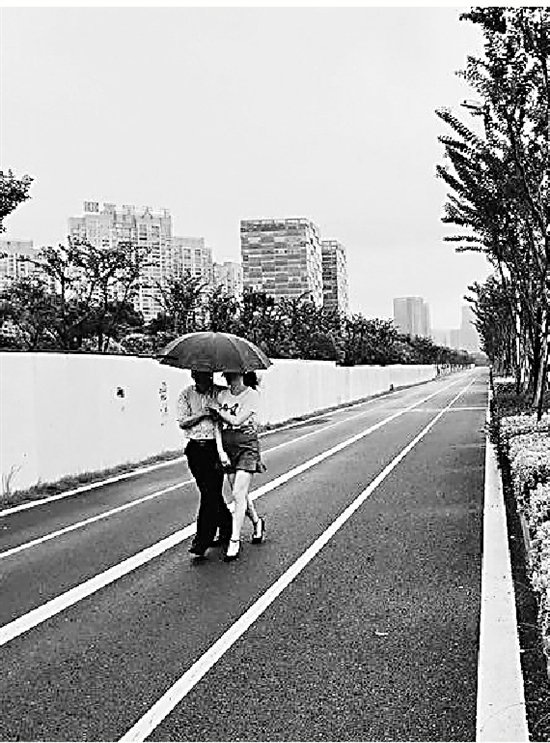 昨天,錢(qián)報(bào)記者到達(dá)時(shí),雨勢(shì)漸小,從南秀路拐進(jìn)通往高鐵公園的小路地面,積水明顯沒(méi)有大馬路那么多,兩個(gè)積水坑都在西側(cè)路沿,積水未過(guò)鞋底。公園里的小道全部用透水瀝青鋪設(shè),滲水性能很好,記者走了一圈,雖然也有看到幾處小水坑,但不影響通行。
