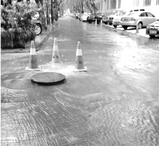 這個(gè)系統(tǒng)效果如何?昨天中午,錢(qián)報(bào)記者來(lái)到白沙泉,雨中的白沙泉是靜謐的,沒(méi)什么人。記者在小區(qū)里轉(zhuǎn)了一圈,只在小區(qū)靠近曙光路的那一帶看到了積水,但不深,一個(gè)正冒著水的窨井蓋處樹(shù)了一個(gè)施工牌子。