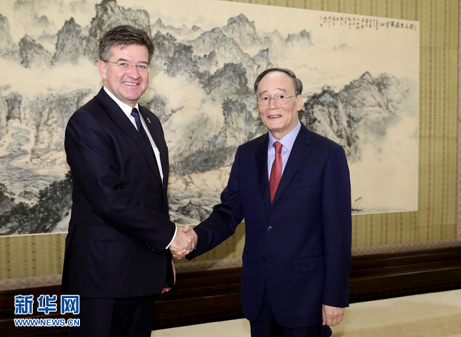7月2日,國(guó)家副主席王岐山在北京中南海會(huì)見第72屆聯(lián)合國(guó)大會(huì)主席萊恰克。 新華社記者 丁林 攝