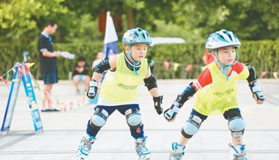 北京市通州區(qū)運(yùn)河文化廣場,小朋友在滑輪滑。王丹楓攝