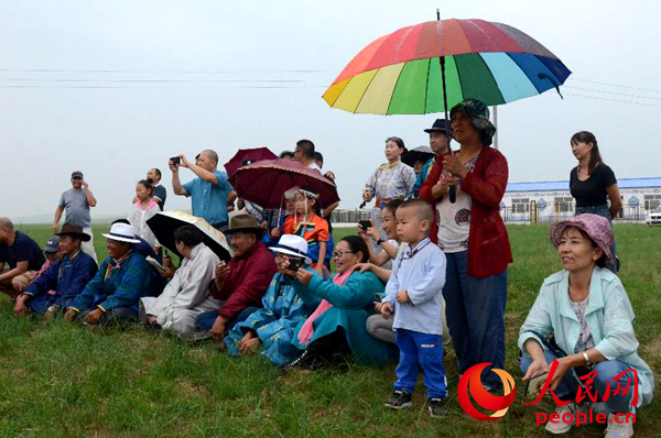 牧民們席地而坐觀看演出。人民網(wǎng) 賀茂杰 攝