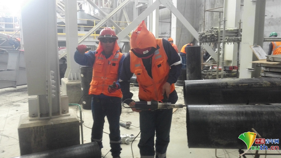 考慮到管材運輸周期長且不便,班組成員來到工地做的第一件事就是重新根據(jù)圖紙核對管材。面對數(shù)以千計的管線圖紙,他們白天黑夜連軸轉(zhuǎn)一個月,困了就趴在圖紙上休息,再加上飲食差異和倒時差的折磨,員工出現(xiàn)水土不服、上吐下瀉的狀況。