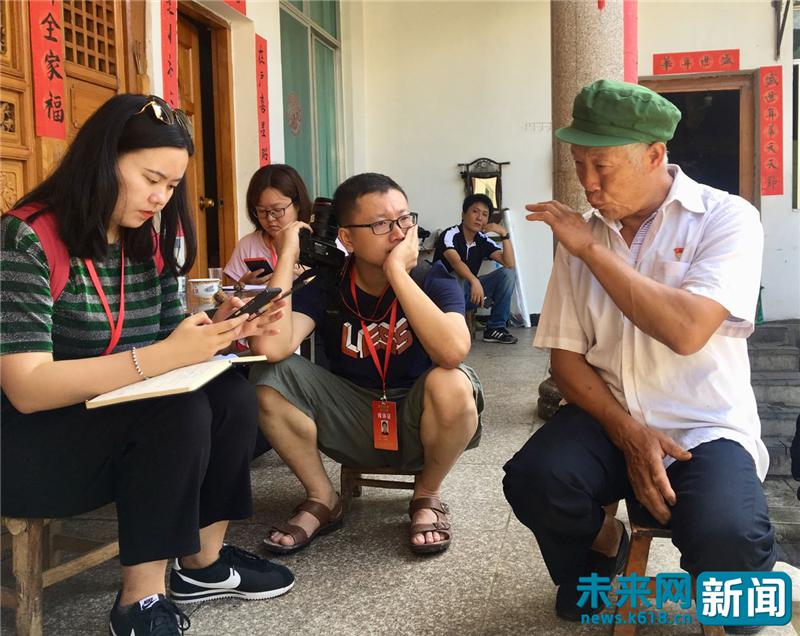 尹相明(右)在向記者介紹崇仁村這些年的發(fā)展變化。未來(lái)網(wǎng)記者 程婷 攝