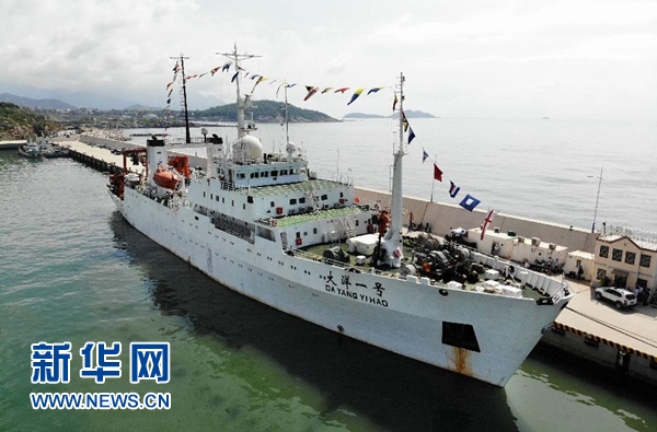 7月31日,在位于山東省青島市的國家海洋局北海分局科考基地碼頭,“大洋一號”科考船準(zhǔn)備起航。新華社記者 李紫恒 攝