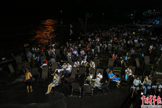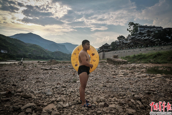 云南省昭通市水富縣,長江上游金沙江畔,市民在水中納涼。金沙江、橫江、長江三江在水富交匯。