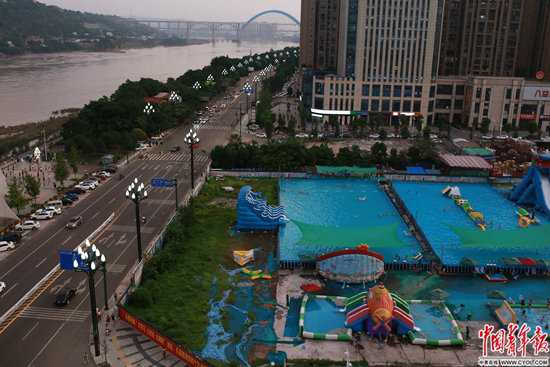 四川省宜賓市,長江邊的游泳池。