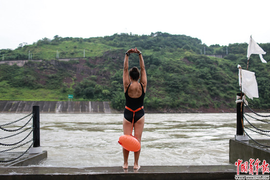 云南省水富縣金沙江畔,53歲的當(dāng)?shù)厝伺遂o在熱身。
