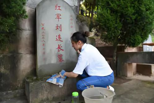 打掃落葉,清除雜草,擦拭墓碑……