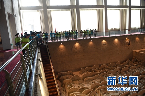 在位于曲沃縣曲村鎮(zhèn)的晉國博物館,來自山西省臨汾市的學生在參觀車馬坑遺址(7月31日攝)。 新華社記者 楊晨光 攝