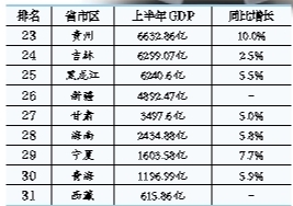 上半年各省份GDP。