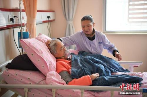 資料圖:護工精心照料住院病患。 中新社記者 劉冉陽 攝