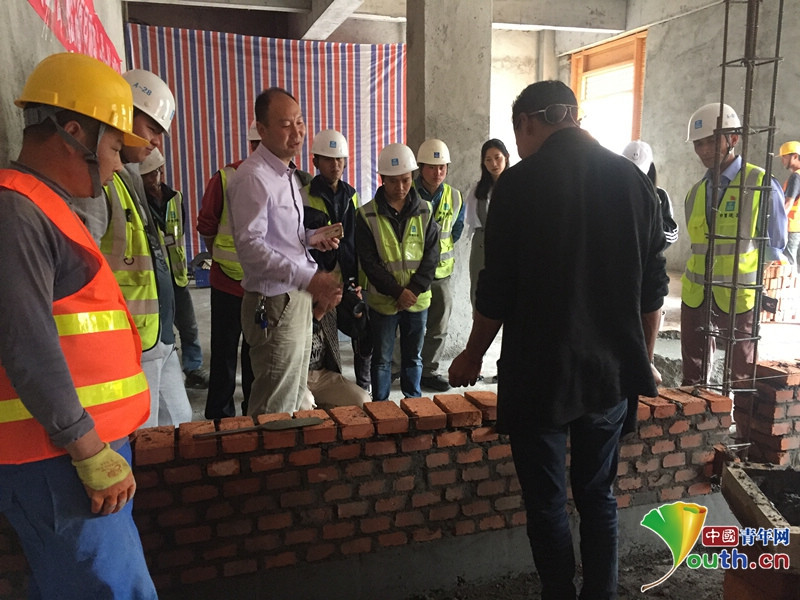 工程人員為當?shù)厥S鄤趧恿M行砂漿攪拌、焊接免費技能培訓。中建二局供圖