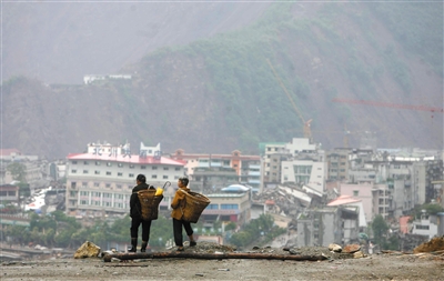 2008年5月12日,老北川縣城一片廢墟。