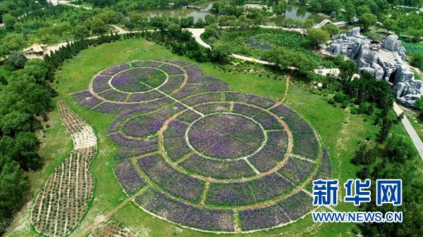 在寧夏石嘴山大武口發(fā)電廠第二排灰場(chǎng)上建起的石嘴山人民公園(7月31日無(wú)人機(jī)拍攝)。 新華社記者 王鵬 攝