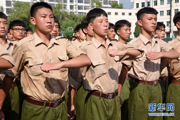 8月28日,新生在湖北省襄陽市??悼h第一中學(xué)參加軍訓(xùn)。新華社發(fā)(楊韜 攝)