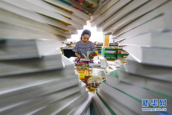 8月28日,學(xué)生在河北省遵化市新華書店營業(yè)廳選購圖書。新華社發(fā)(劉滿倉 攝)
