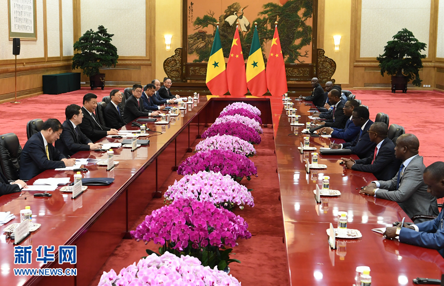 9月2日,國家主席習(xí)近平在北京人民大會堂會見塞內(nèi)加爾總統(tǒng)薩勒。 新華社記者 高潔 攝