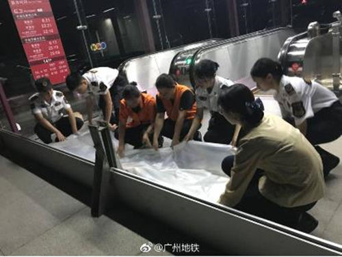 ▲臺風來臨前,地鐵乘務員正在為地鐵站做好防汛工作。