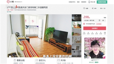 位于北京東五環(huán)外的燕保雙橋家園公租房項(xiàng)目于2015年投放。該小區(qū)5號(hào)樓2單元508室的承租人遲女士,將所承租的60平方米的小兩居改成日租房,至今已經(jīng)營(yíng)兩年了。9月19日,記者登錄小豬、途家、榛果3個(gè)民宿預(yù)訂網(wǎng)站,記錄顯示,遲女士經(jīng)營(yíng)的民宿近期價(jià)格為每晚398至498元不等,早在2017年1月就有了住戶評(píng)價(jià)。