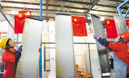 圖② 9月30日,江西省新余市渝水區(qū)珠珊鎮(zhèn)板橋工業(yè)園,江西劍安消防設(shè)備有限公司的生產(chǎn)車間里,員工忙生產(chǎn),為國慶獻(xiàn)禮。 鐘婷 攝