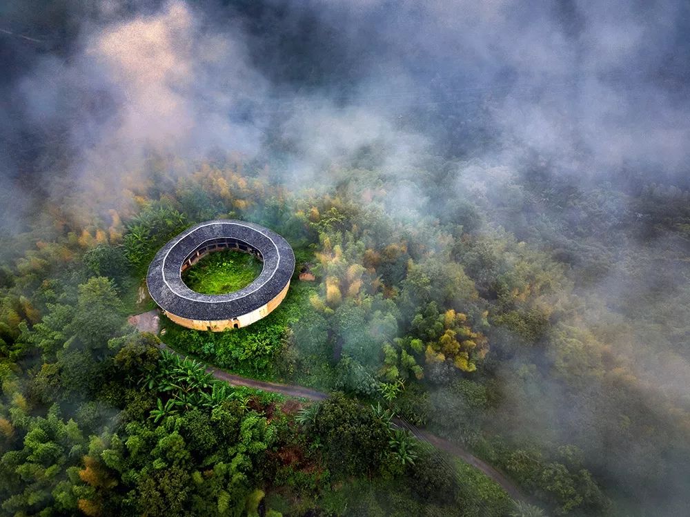 2018-09-16,福建龍巖。土樓倚山偎翠,方圓錯(cuò)落,似古堡巍峨蒼樸。作者:張煒