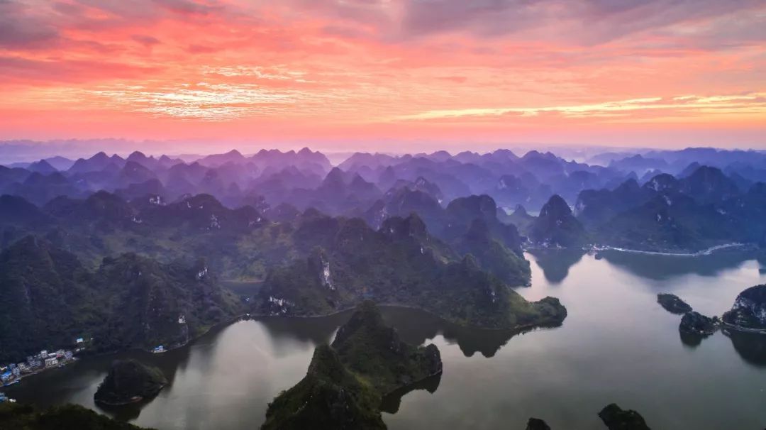 2018-10-03,廣西南寧。大龍湖縹碧清幽,周圍群峰林立,奇山秀水,渾然一體。作者:羅羅