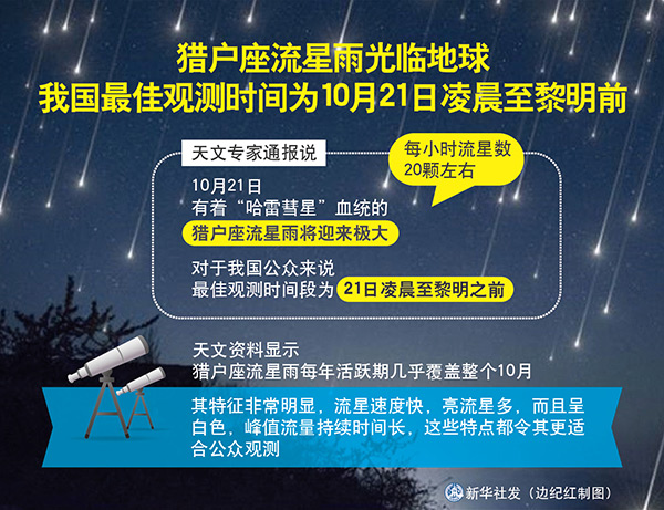 圖表:獵戶座流星雨光臨地球 我國(guó)最佳觀測(cè)時(shí)間為10月21日凌晨至黎明前 新華社發(fā) 邊紀(jì)紅 制圖