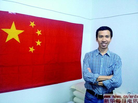 2015年3月空襲時(shí),劉萬利在中國駐也門使館地下室與國旗合影。劉萬利(國際部)
