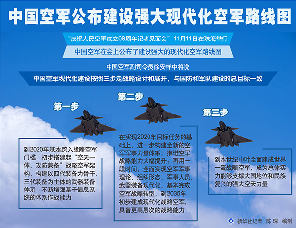 圖表:中國空軍公布建設(shè)強大現(xiàn)代化空軍路線圖 新華社記者 陳琛 編制