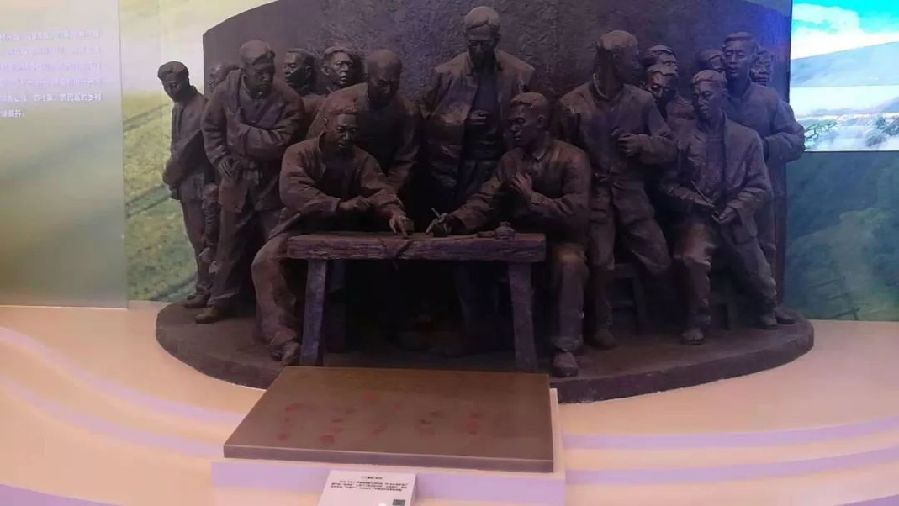“我們的家鄉(xiāng),在希望的田野上?!?978年冬,安徽鳳陽(yáng)縣小崗村18位農(nóng)民堅(jiān)定地按下紅手印,實(shí)施包產(chǎn)到戶(hù),拉開(kāi)了中國(guó)農(nóng)村改革的大幕,成為中國(guó)改革的標(biāo)志。這座雕塑讓我們重溫那個(gè)永載歷史的瞬間。