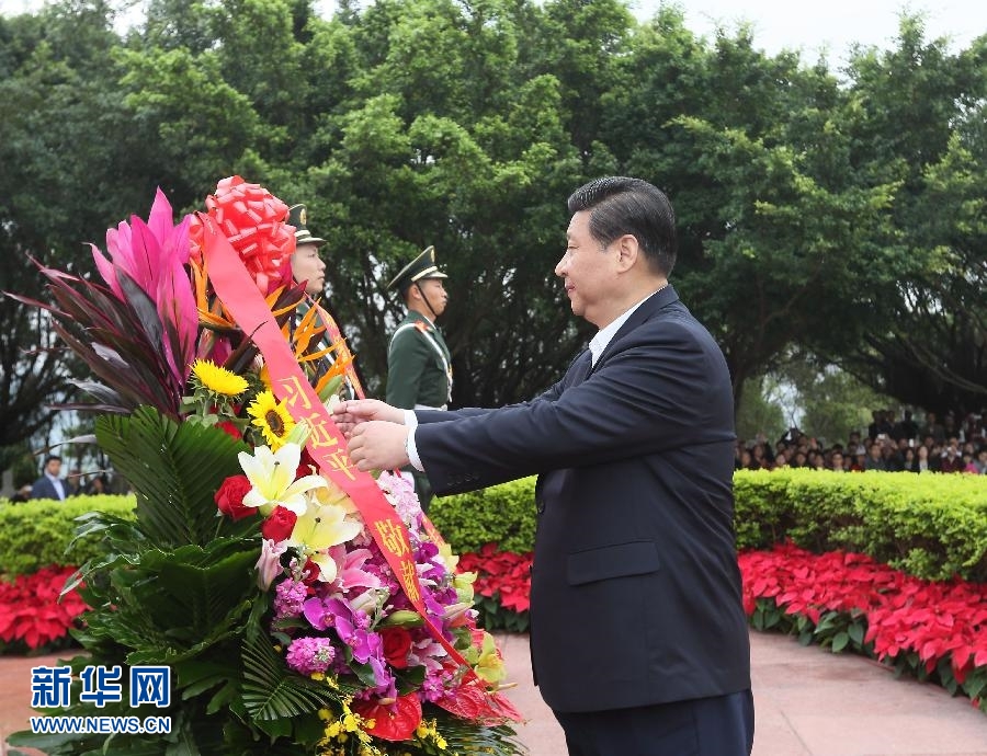 2012年12月,習近平在深圳蓮花山公園向鄧小平銅像敬獻花籃。 新華社記者蘭紅光攝