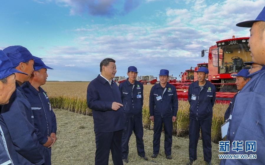 9月25日,習近平在黑龍江農墾建三江管理局七星農場萬畝大地號與農場工人們親切交談。 新華社記者 謝環(huán)馳 攝