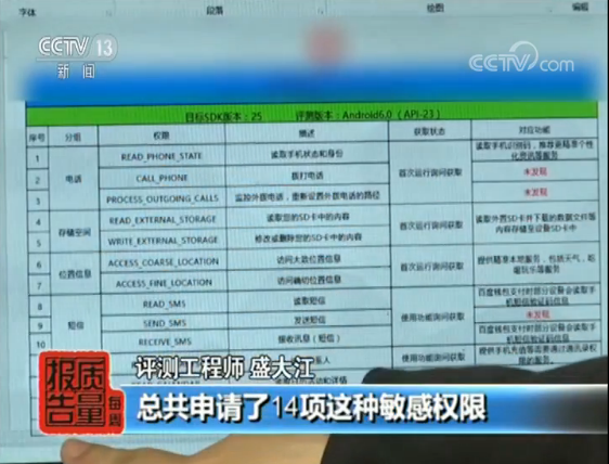 上海市消費者權(quán)益保護委員會、副秘書長 唐健盛:從測試情況來看,可以說情況非常不理想,很多的頭部App實際上在權(quán)限的申請和調(diào)用方面,其實是違反了一些必要性、正當(dāng)性等等原則的。