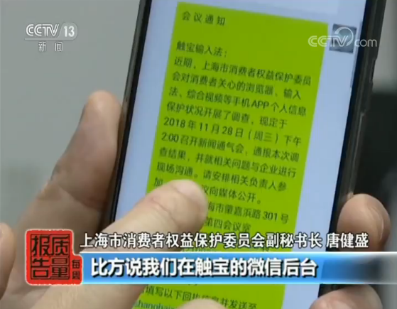 上海市消費者權(quán)益保護委員會副秘書長 唐健盛:發(fā)布會的兩天以前,我們就通過各種方法和三家企業(yè)能夠進一步,希望能夠跟他們聯(lián)系上,比方說我們在觸寶的微信后臺進行了留言,并且我們也上傳了PDF版的合照我們的會議通知,那么其它的你比方說獵豹瀏覽器和芒果TV我們也采用了類似的方法,我們希望多種渠道能夠使他們知道這個事,并且也非常希望他們能夠來開我們的發(fā)布會,給到消費者一個明明白白的說法。那么非常遺憾,我們通過消費者溝通的這種渠道沒有獲得企業(yè)應(yīng)有的響應(yīng),我們也認為其實在這一塊企業(yè)也是需要進一步加強的。